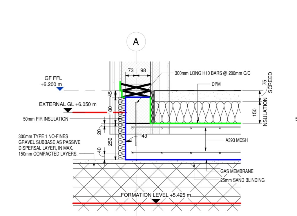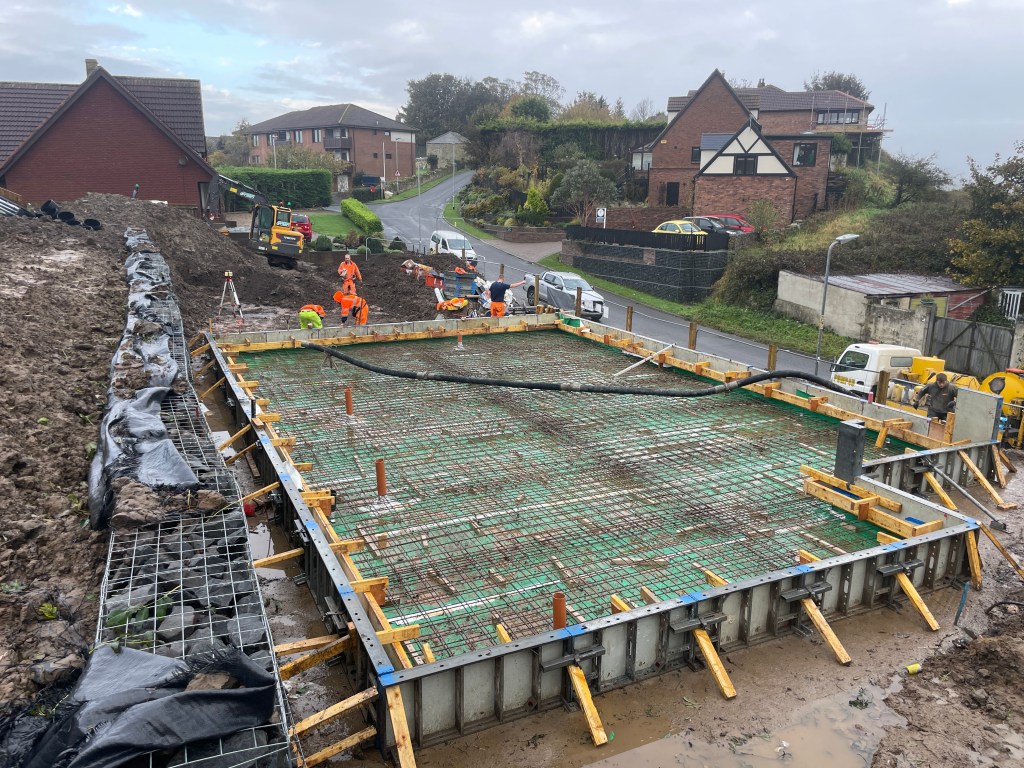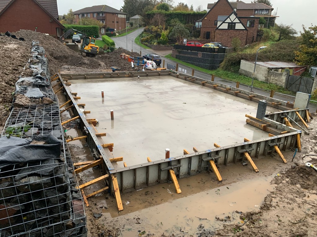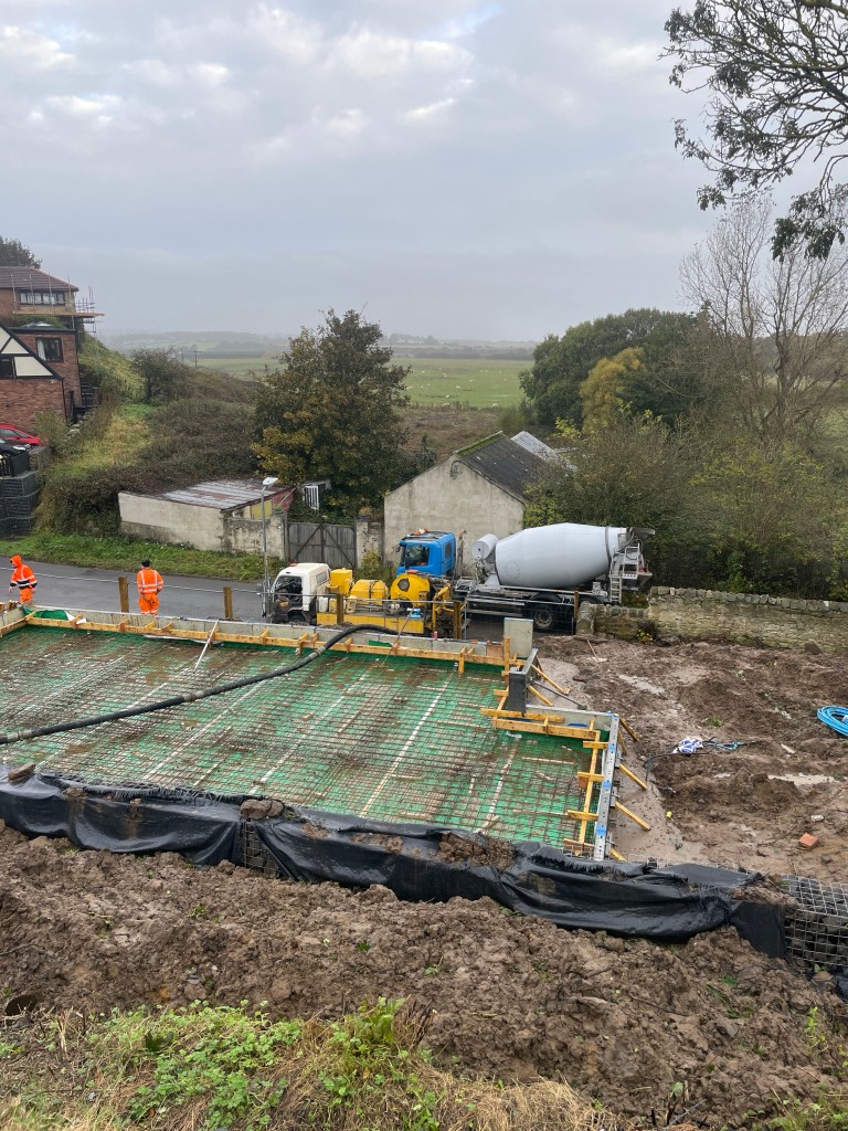 Myself and Fiona visit the site and realise that the vertical rebar hasn’t been placed. A panic call to Marc (structural engineer); explanation is that the upstands have been cast in one so rebar isn’t needed but he’d not been informed that the approach had been changed ! No impact but this could have been disastrous.