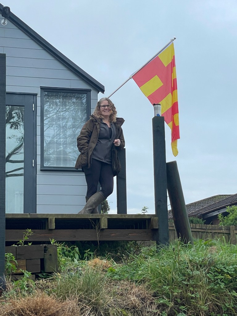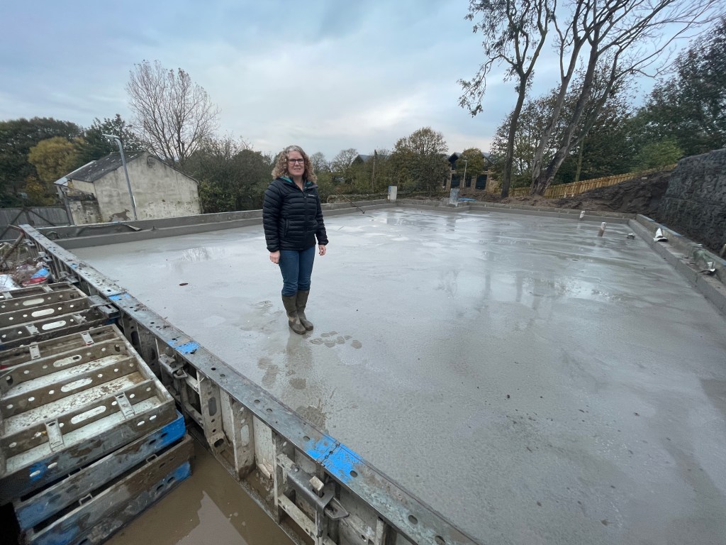 Myself and Fiona arrive on site early. Lots of people working but no concrete. So we hoist the flag and wait ..